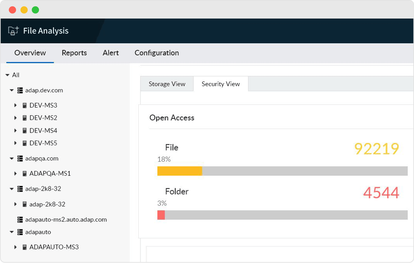 Audite, monitoree, reciba alertas y genere informes sobre accesos a archivos y modificaciones hechas en el ambiente del servidor en tiempo real.